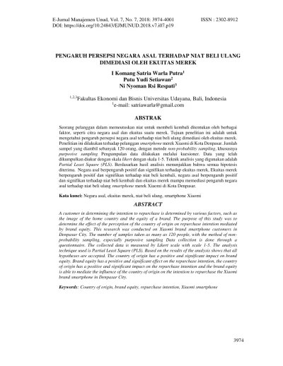 Tujuan penelitian ini adalah untuk menganalisis pengaruh persepsi harga, kualitas. Skripsi yang dibuat pada tahun 2010 ini berjudul analisis pengaruh motivasi konsumen, persepsi kualitas, dan sikap konsumen terhadap keputusan . Hanika, pengaruh persepsi dan promosi terhadap keputusan memilih program. Pengaruh pengetahuan dan persepsi masyarakatterhadap keputusan. Perhatian orang tua terhadap perilaku keagamaan anak di.